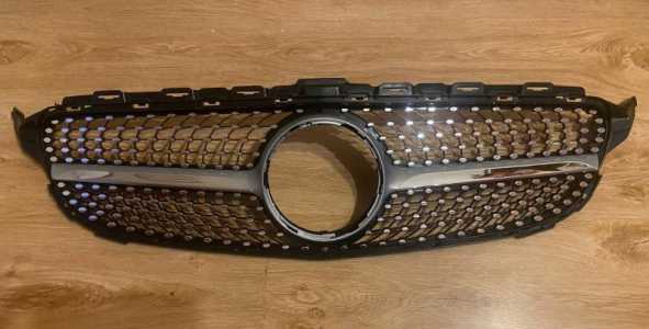 Решетка радиатора для Мерседеса C-класс 2014-2018. Выполнена в серебристом цвете.