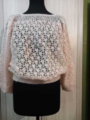 Лёгкий, но теплый, объемный ажурный свитер ручной работы, связанный крючком из турецкой пряжи Alize kid mohair Royal, состав...