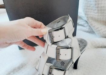 Босоножки 34 размера. Высота каблука 5 см. Есть дефекты на стельке с внутренней стороны, внешних дефектов нет.