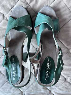 Привезены из Италии в лучшие времена, коробки и чека нет. Очень актуальная модель в этом летнем сезоне. Высота каблука - 14.