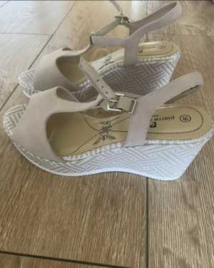 Продаю босоножки белые на танкетке,танкетка аккуратная ,устойчивая,удобная размер36