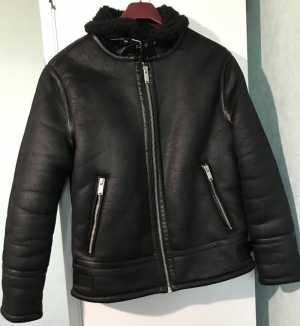 Дубленка на молнии, цвет черный, искусственный мех. Без дефектов.