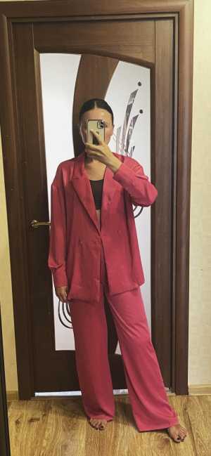 Брючный костюм цвета фуксия, 42 размер, брюки на резинке, свободные, пиджак-рубашка - оверсайз Мой рост - 167 см, надет 1...