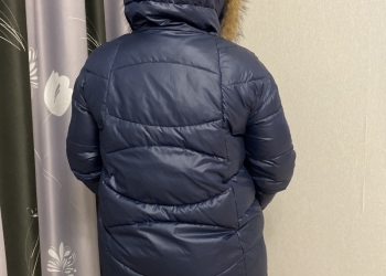 Продам пуховик синий. В хорошем состоянии. Капюшон пристёгивается. Есть пояс.Длина 106 см