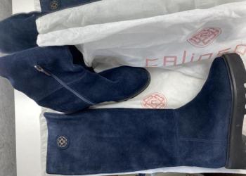 Ботфорты., зи. Натуральная замша на овчине на стройные ноги. Размер 39.синего цвета