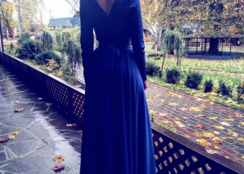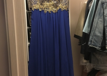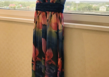 Цвет синий,длинное в пол, рост 165-170. Размер 44-46(m). Одевалось один раз, в идеальном состоянии.