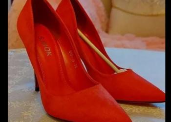 Шикарные новые туфли, цвет сочно алый, на 37 размер, мягкая эко замша, каблук 10 см.