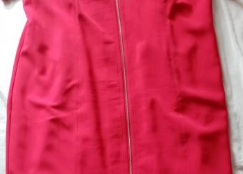 Платье р60 красное на замке. Держит форму. Закрывает колени.