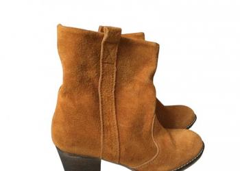 Замшевые ботильоны 34 р-ра. Каблук 6-7 см. Носила пару раз. Причина продажи - стали малы.