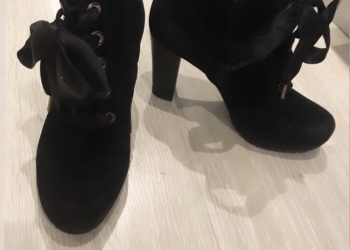 Чёрные ботильоны из натуральной замши. С атласными шнурками. Немецкая фирма Hogl. Покупались за 12000. Внутри утеплённые.