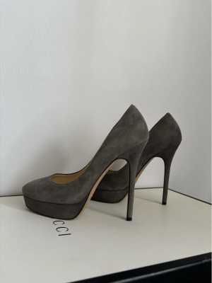 Обмена нет. Замшевые лодочки Jimmy Choo в нейтральном сером оттенке.
