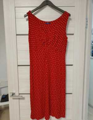 Летнее платье Tom Tailor, размер 48 (L), из вискозы. Яркий красный цвет с белыми горошинами. Подходит на рост до 175 см.