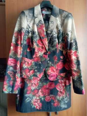 Женский костюм из шерсти (virgin wool) с разноцветным узором в виде роз. Производство - Польша.Размер 44 (S/M).