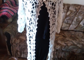 Кардиган летний, вязаный крючком, пряжа акрил (детская пехорка) состояние новое, длина 95см,цвет жёлтый,отвечаю в сообщениях...