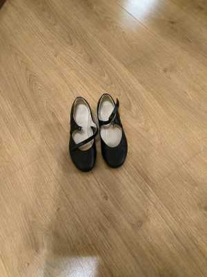 Туфли черные для танцев из натуральной кожи на низком каблуке (удобная застёжка).