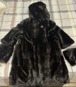 Норковая шуба в отличном состоянии! Мех плотный, блестящий и очень красивый.Есть капюшон, рукава съемные.