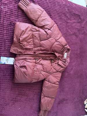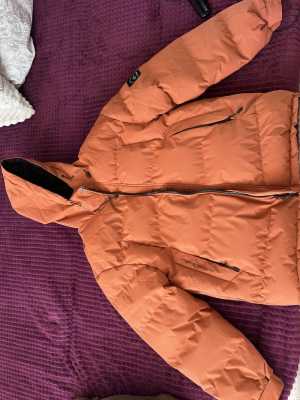 Зимний тёплый комбинезон. Размер указан 134, но штаны отворачивается ( на фото показала). Капюшон отстёгивается.