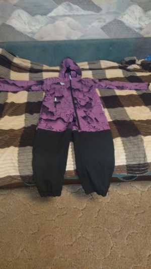 Зимний тёплый комбинезон. Размер указан 134, но штаны отворачивается ( на фото показала). Капюшон отстёгивается.