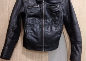 Куртка кожаная женская/подростковая,со вставками из трикотажа. Цвет-Черный.Состояние-Хорошее.