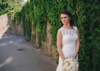 Шикарное свадебное платье из кружева для утонченной невесты! Спереди прямое, сзади есть шлейф средней длины.