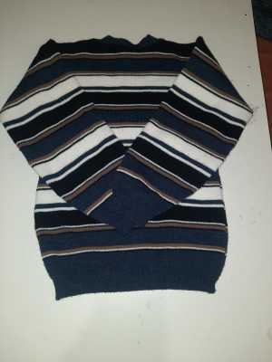Тёплый свитер в полосочку для мальчика и девочки в тёмных тонах.