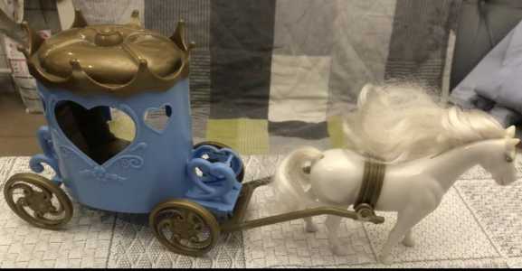 Детская игрушка, карета с белой лошадью для принца или принцессы.