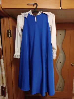 Продаётся б/у синий сарафан и белая блузка для девочки. Также есть подъюбник. В хорошем состоянии. Одевали 1 раз.