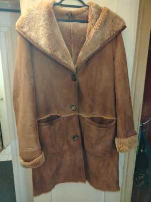 Женская дубленка натуральная 46 размера, капюшон отстегивается.