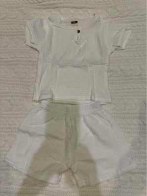 Белый муслиновый новый костюм в упаковке. Рост 80,но можно и на 74. Будет посвободнее,что даже лучше на лето. Забирайте.