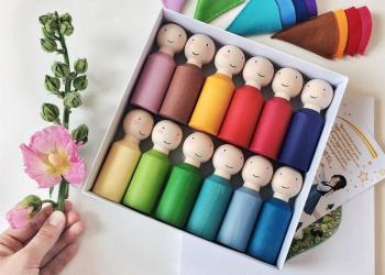 Пирамидка Радуга состоит из 9 ярких цветных дуг разного размера. Все детали шлифуются и красятся вручную.