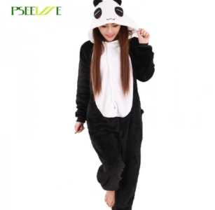 Кигуруми черного цвета из мягкой плюшевой ткани с капюшоном.
