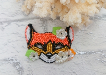 Брошь лисенок вышитая в ручную.