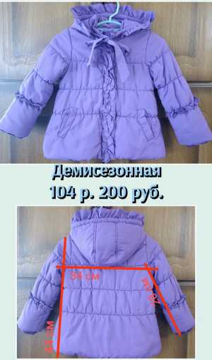 Вид товара: Одежда; Предмет одежды: Верхняя одежда; Размер: 98-104 см (2-4 года); Для кого: Девочкам;