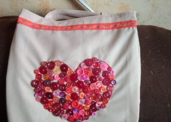 Размеры сумки 47 х 41, ручки-18 см. На подкладке есть карман. Декор-вышивка и пуговицы, материал-плащевка.