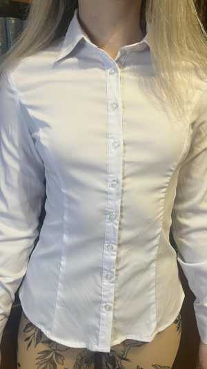 Белая рубашка Qianzhidu Fashion, размер M и L. Приталенный крой, эластичная ткань — комфортно сидит и не мнётся.
