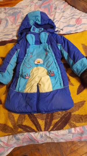 Продаю утепленный комбинезон-трансформер с отстёгивающимся капюшоном . Горлышко закрыто , на ручках накидные манжеты.