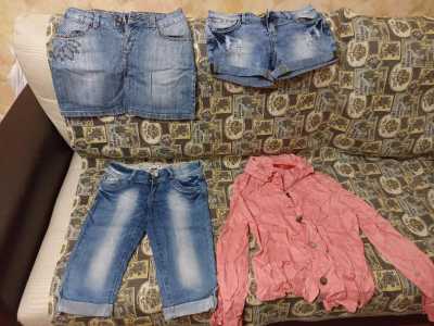 Шорты, юбка,бриджи, лёгкая ветровка. Размер примерно 42-44. Нужно смотреть. Смотрите профиль там много вещей🙂.