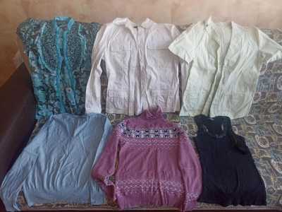 Женские вещи Отдам за 2 большие шоколадки. Есть хорошие вещи, а есть с пятнышками. Можно попробовать отстирать, т.к.