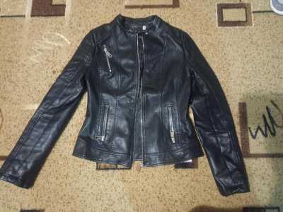 Кожанная куртка короткая. Из эко кожи. Размер написан"м'. Но пойдёт больше на 40 - 42 размер. Состояние новой.