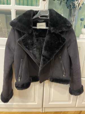Дубленка на молнии, цвет черный, искусственный мех. Без дефектов.