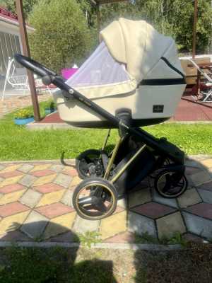 Продаю коляску 2 в 1 в отличном состоянии после одного ребенка! ЭКО -кожа, легко протирать, красивый цвет, золотая рама...