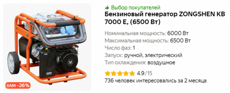 Мощность номинальная: 12 кВт (15 кВА) Мощность максимальная: 13.
