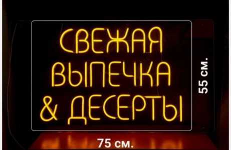 Неоновая вывеска свежая выпечка десерты Неоновая вывеска для пекарни, кондитерской или кофейни.