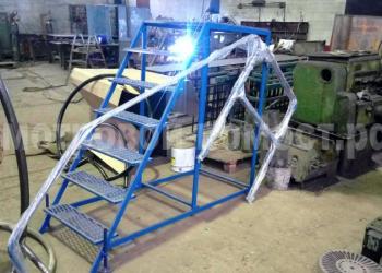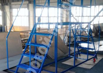 Для удобства транспортировки мобильный смотровой помост поставляется со снятыми перилами и колесами.