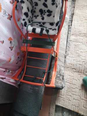 Санки Российского производства в хорошем состоянии,сзади имеют колеса для проезда по асфальту,жесткая ручка переставная...