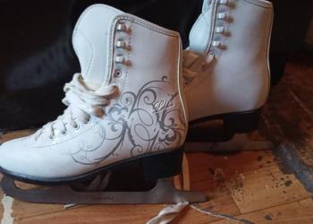 Коньки для фигурного катания, 36 размер, белые с рисунком
