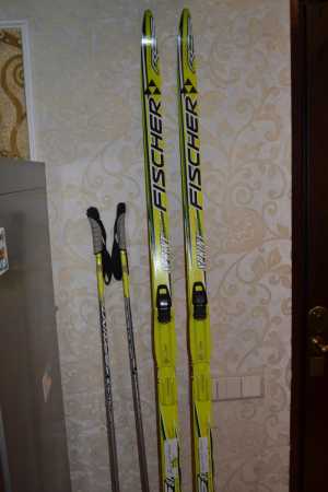 Продаю лыжи "Fischer sprint Grown" 150N630 c креплениями и лыжными палками 100 см.