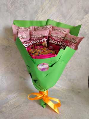 Яркий сладкий букет, который не завянет и подарит отличное настроение. состав: chupa-chups mini 35 шт. choco-pie 11 шт.