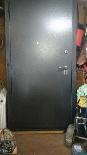 Обивка входной двери в Пушкино . Замена старого дермантина на металлической и деревянной двери .