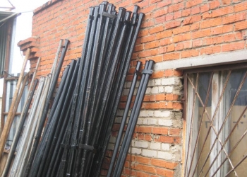 Металлические столбы. Диаметр от 32 до 114. Есть профильные и круглые. Высота 2м, 2,4м либо 3м.